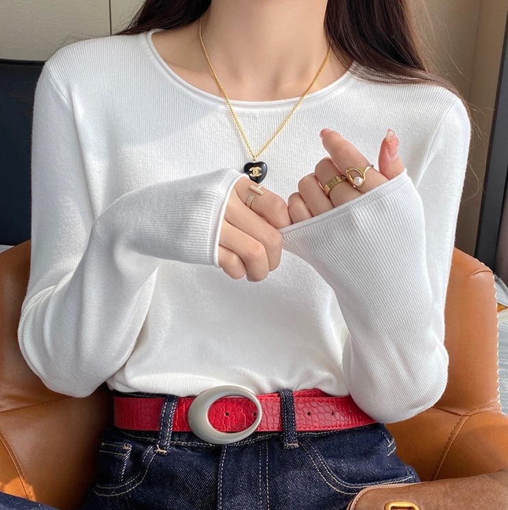 トップスとボトムスの間に差し色のカットソーを入れると、抜け感が生まれて「のっぺり感」を防げます。