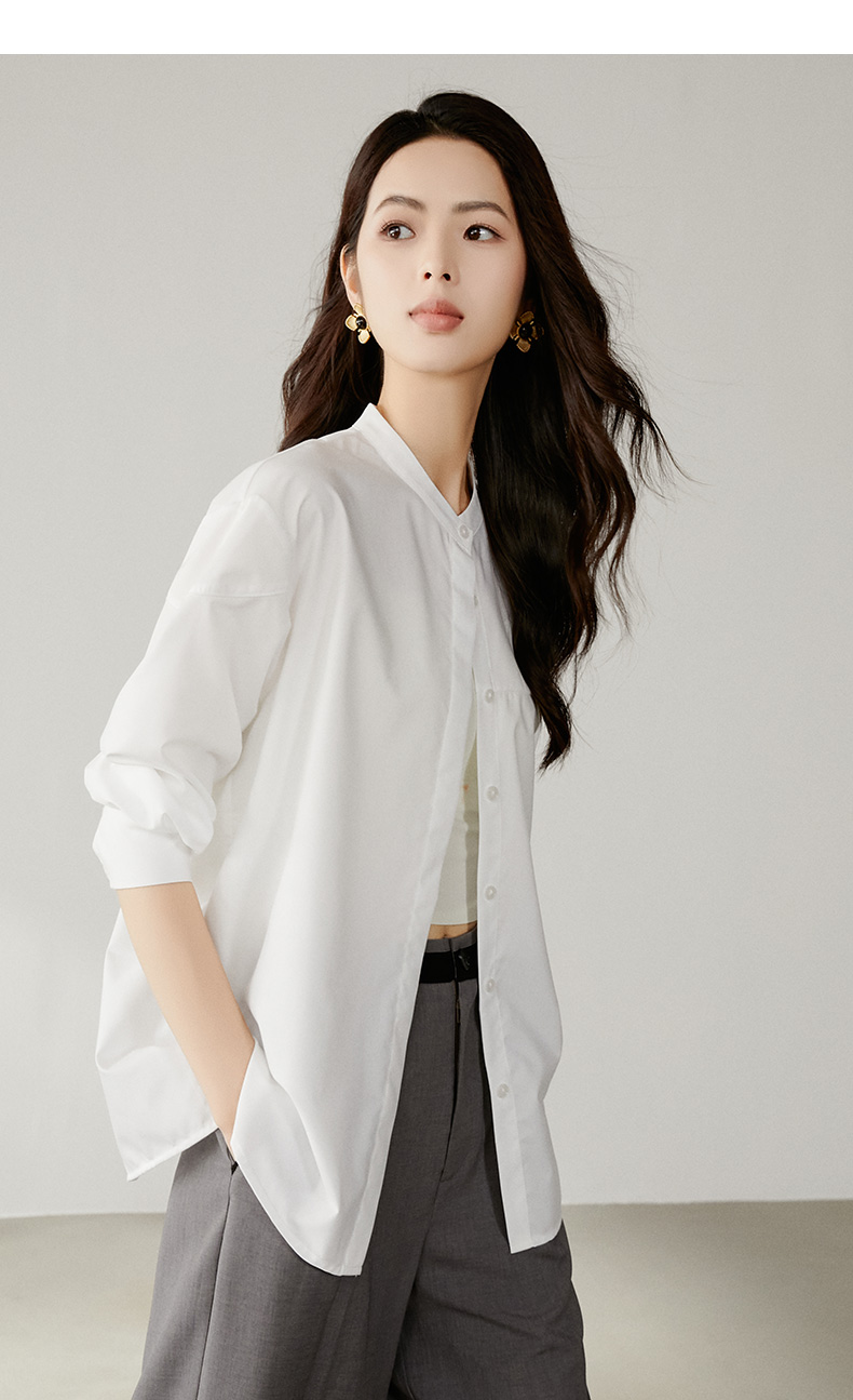 清潔感あふれる白コーデの基本となるこのシャツは、スーツスタイルはもちろん、ジャケットを脱いだ時のインナーとしても一流の存在感を放ちます。