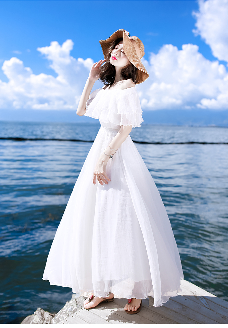 夏には白のマキシワンピースがおすすめ。 サンダルやキャップを合わせれば、リラックス感がありつつおしゃれでかわいいリゾート白コーデに仕上がります。