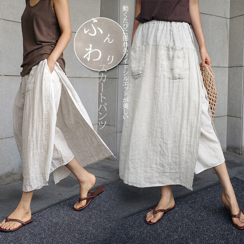 パンツの機能性とスカートの女性らしさを兼ね備えた涼しいデザインが特徴的。