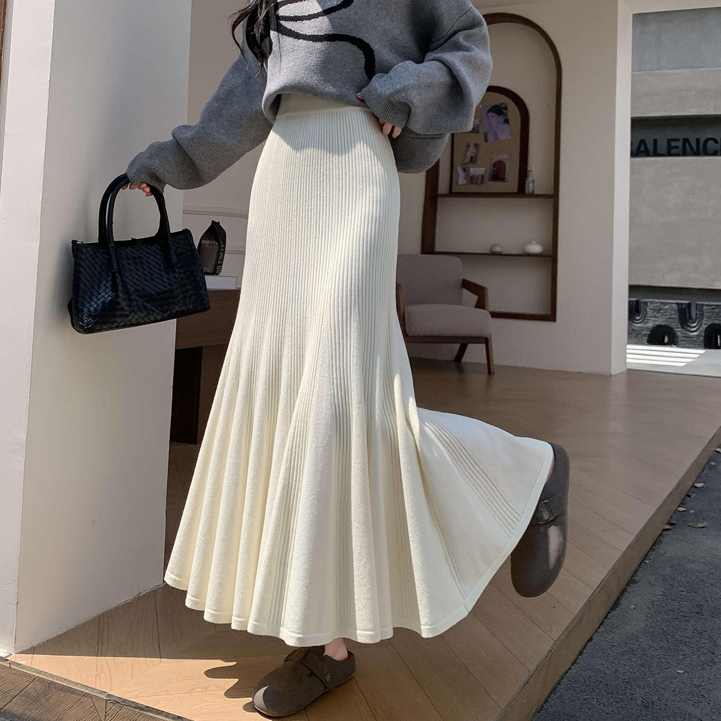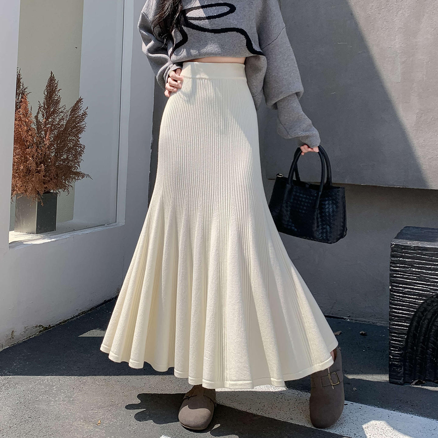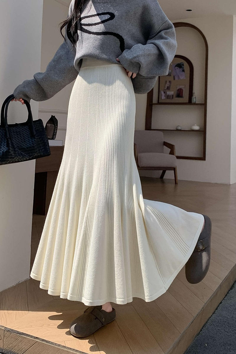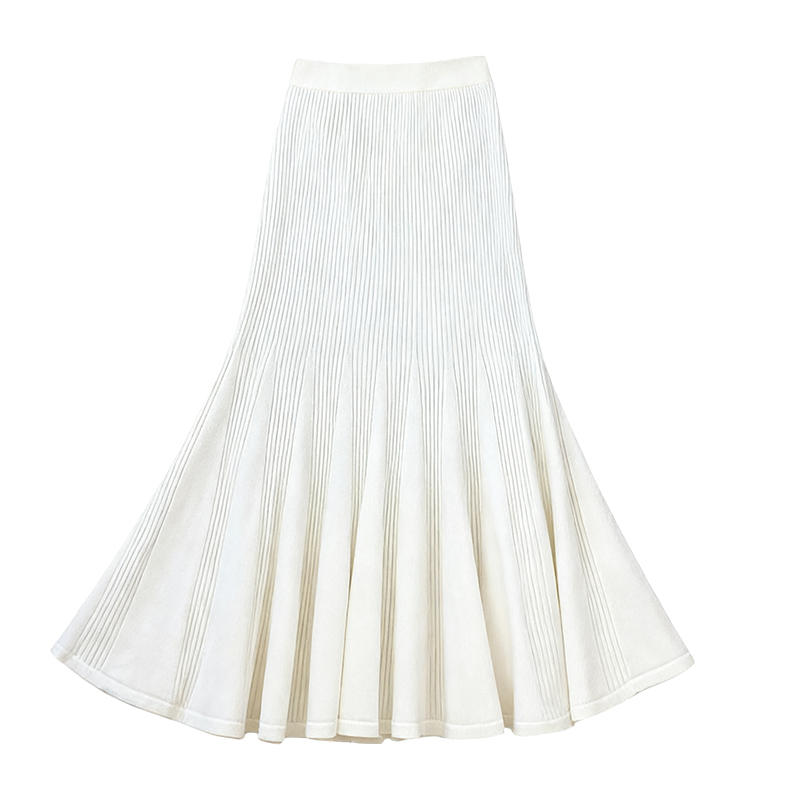 白コーデの主役になる上品なニット素材のマーメイドスカート。