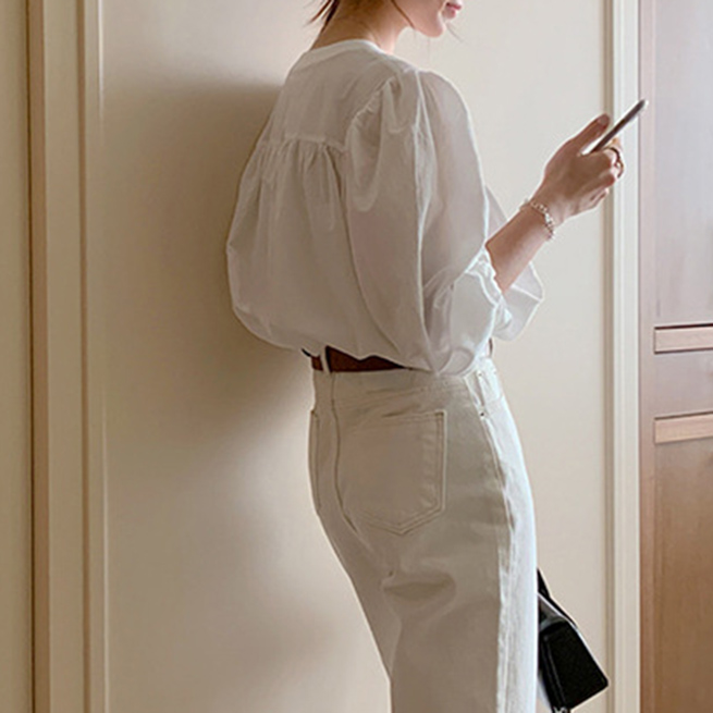 ふんわりとした袖のシルエットで、一枚でも重ね着でも着回し自在。
