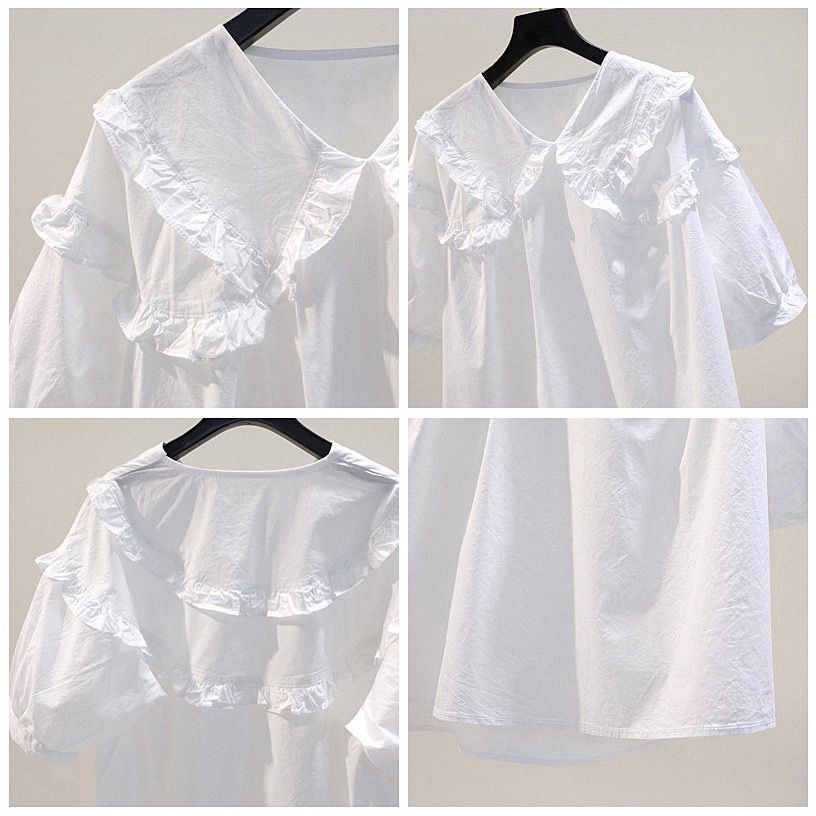 ■コメント ◇ポイント◇ ・小顔効果のある大きめの襟。 ・清潔感のあるホワイトカラーで爽やかな1着。 ・スカートやデニム、ショートパンツなど、カジュアルからきれいめコーデまで色んな着こなしができます。 ・さらりとしたコットンブレンド生地で軽やかな着心地。 ・大人フェミニンスタイルに仕上がります。 ■サイズ(単位:約cm) 画像に記載 ■カラー 画像に記載 ■伸縮性 なし ■裏地 なし ■生地の厚さ 普通 ■透け感 ホワイト:ややあり ■素材 ポリエステル85%綿15% ■重量 ■包装状況 OPP袋