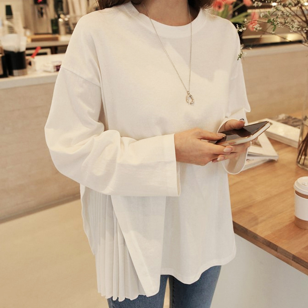 ■コメント ・両サイドにプリーツが施された上品な印象の長袖トップス。 ・シンプルデザインながら動くたび上品にゆれるプリーツがフェミニンな印象。 ・ふんわりデザインで体のラインを拾わずオシャレに体系カバーしてくれます。 ・これからの季節にぴったりなアイテムです。 ・普段のお出かけやショッピング、デートにも◎ ・特に細身のパンツとの相性は抜群◎ ■サイズ(単位:約cm) フリーサイズ 着丈約62cm、バスト約112cm、肩幅約57cm(OK) ■カラー 画像に記載 ■伸縮性 なし ■裏地 なし ■生地の厚さ 普通 ■透け感 なし ■素材 綿70%、ポリエステル30% ■重量 300g ■包装状況 OPP袋